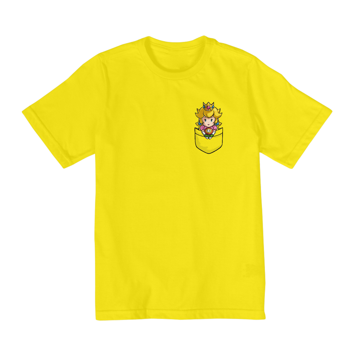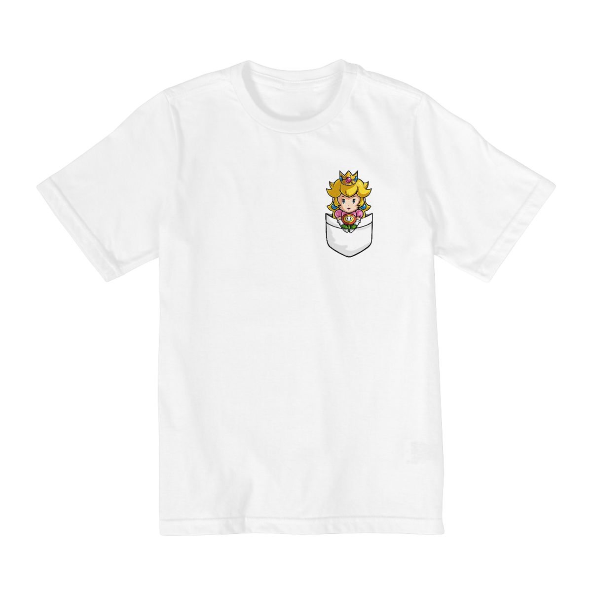 Ela cansou de esperar ser salva. Agora, a Princesa do mundo do Super Mario resolveu pular direto pro seu look — em uma estampa criativa que simula um bolso no peito, com ela saindo com aquele ar de quem manda no jogo.