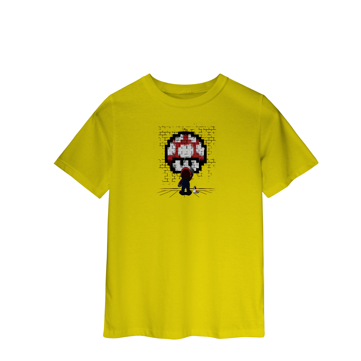 O Mario largou os blocos e pegou o spray! Nesta estampa urbana e ousada, o encanador mais famoso do mundo presta homenagem ao lendário cogumelo em forma de arte de rua. Ideal pra quem curte estilo, nostalgia e atitude nas paredes… e no look também.