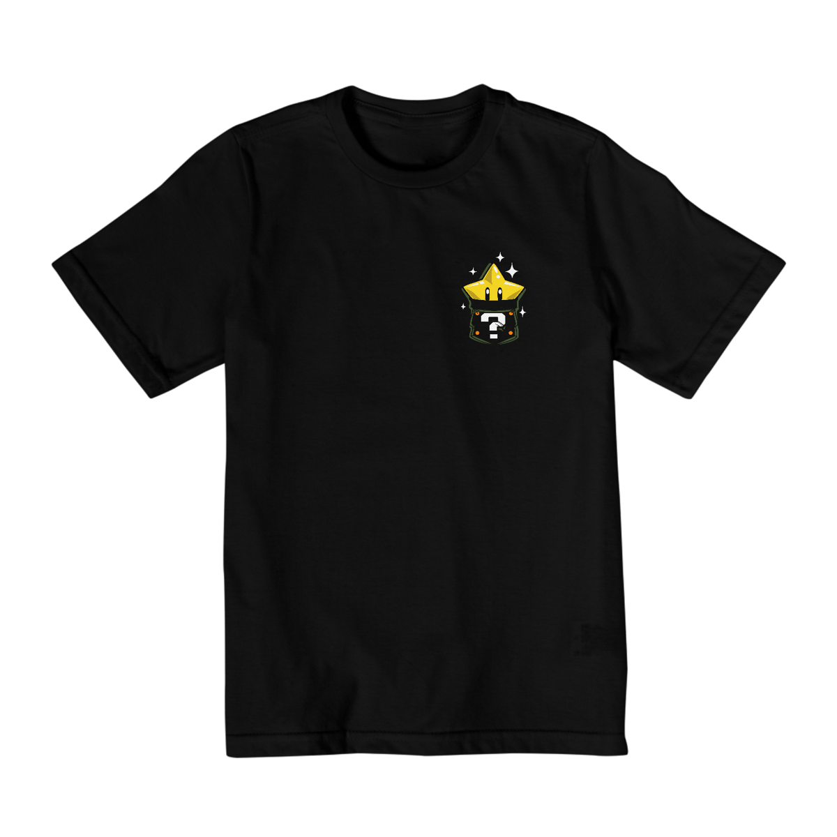 Sabe aquela sensação de pegar a estrela no Super Mario e sair correndo sem medo de nada? Agora imagina carregar esse poder no bolso. Essa camiseta traz a icônica Super Star do game, saindo discretamente do bolso, pronta pra transformar seu look em puro brilho e atitude.