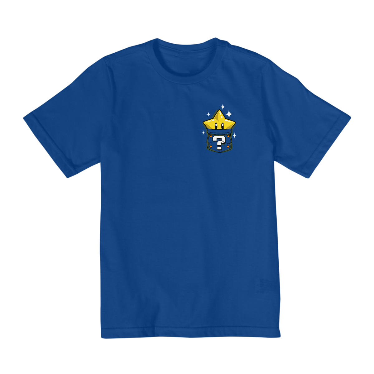 Sabe aquela sensação de pegar a estrela no Super Mario e sair correndo sem medo de nada? Agora imagina carregar esse poder no bolso. Essa camiseta traz a icônica Super Star do game, saindo discretamente do bolso, pronta pra transformar seu look em puro brilho e atitude.