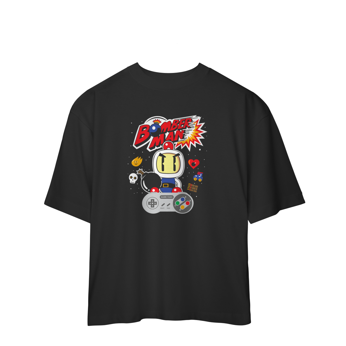 Essa camiseta com a estampa do lendário Bomberman retrô do SNES não é só roupa… é um portal direto pros anos dourados do videogame, quando zerar uma fase era vitória de guerra e a amizade acabava numa explosão no canto da tela.