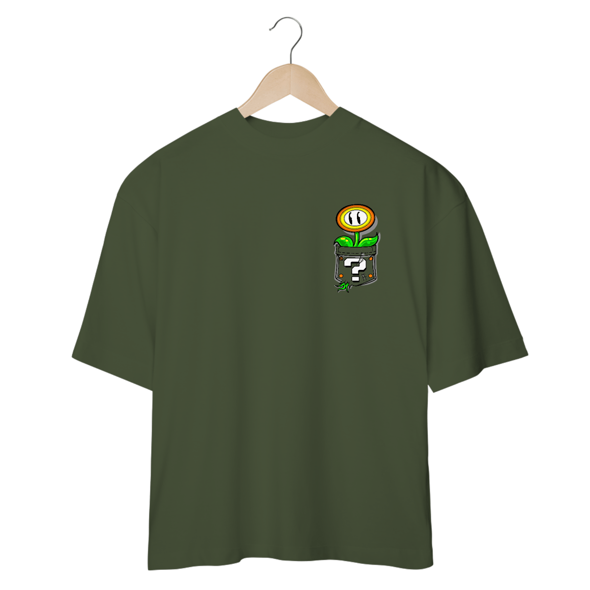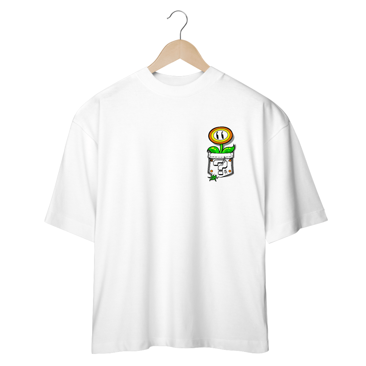 Se você curte aquele visual descolado, confortável e com uma pitada de nostalgia gamer, a Camiseta Oversized Flor de Fogo no Bolso vai ser sua nova favorita. Inspirada no icônico power-up do universo Mario, a flor aparece como se estivesse saindo de um bolso estampado no peito – um detalhe simples que faz toda a diferença.