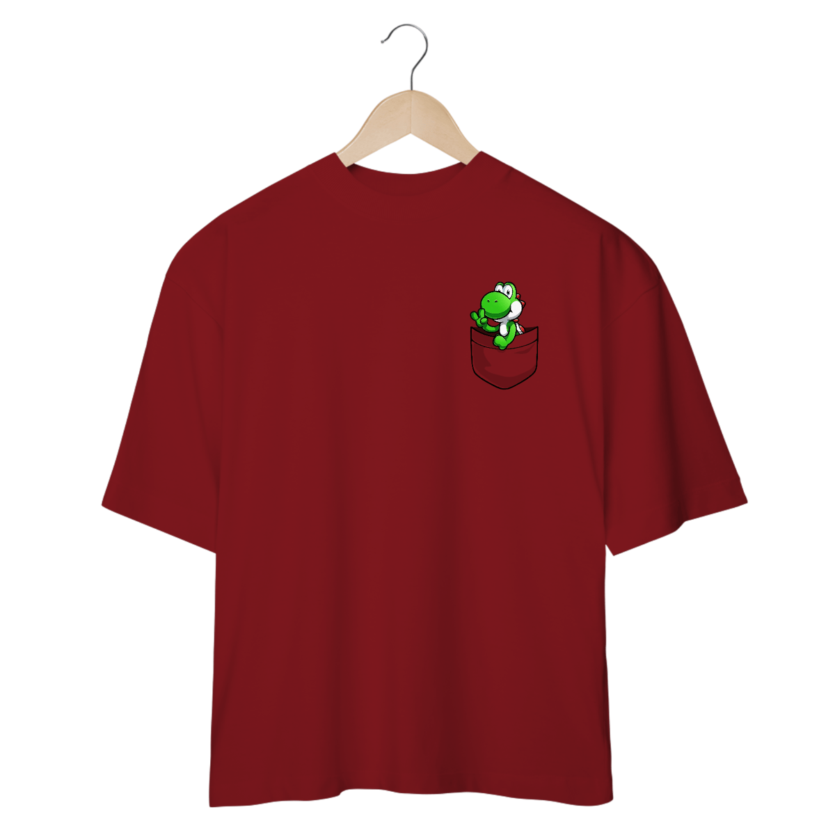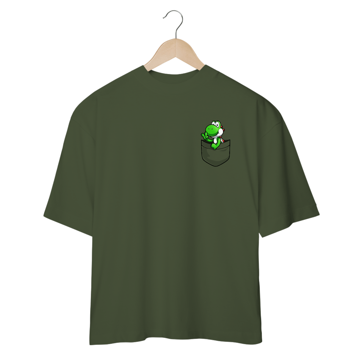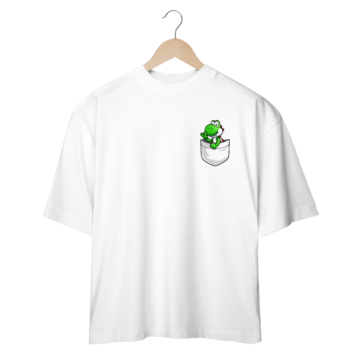 Camiseta Oversized Yoshi no Bolso – O Dino mais estiloso do Reino dos Games!