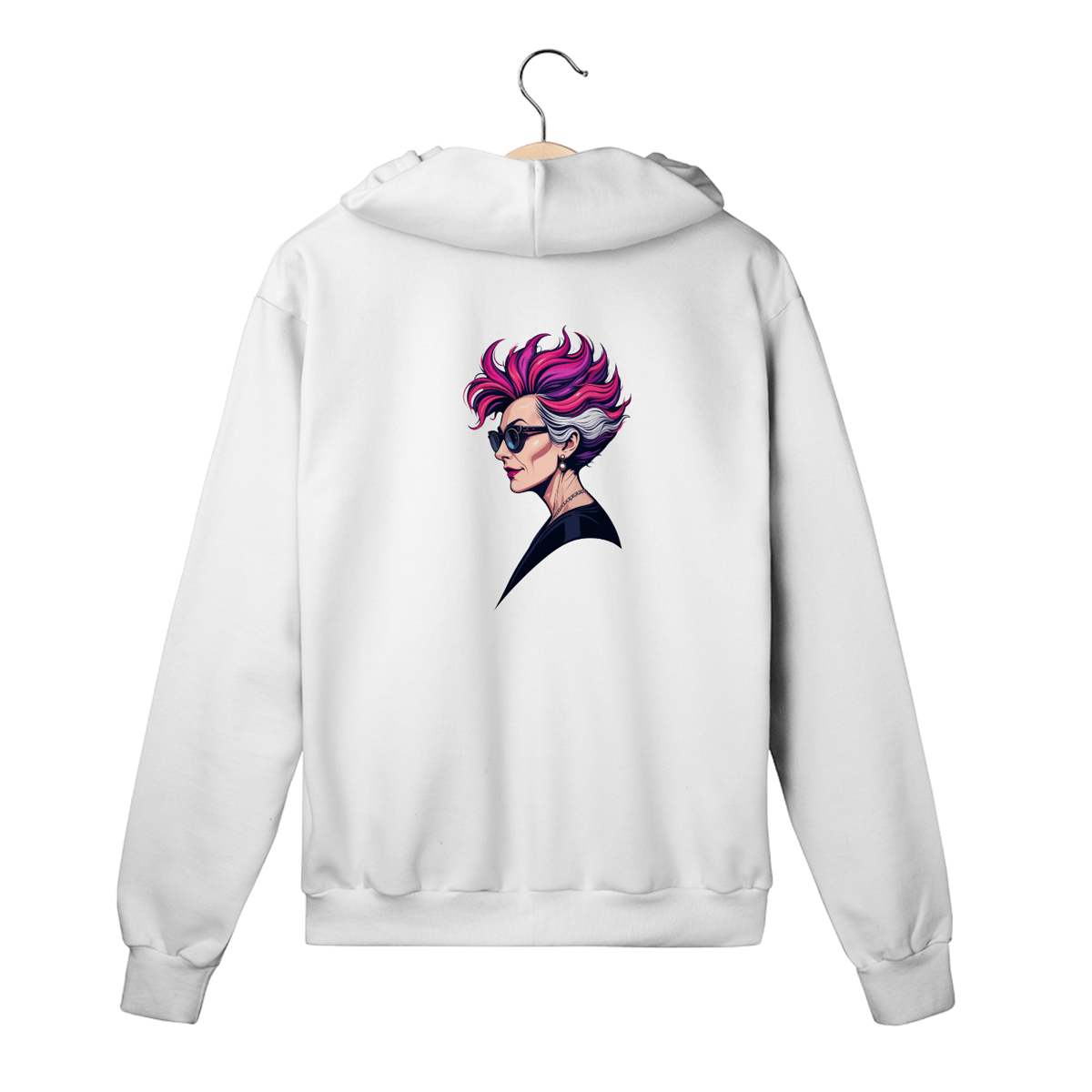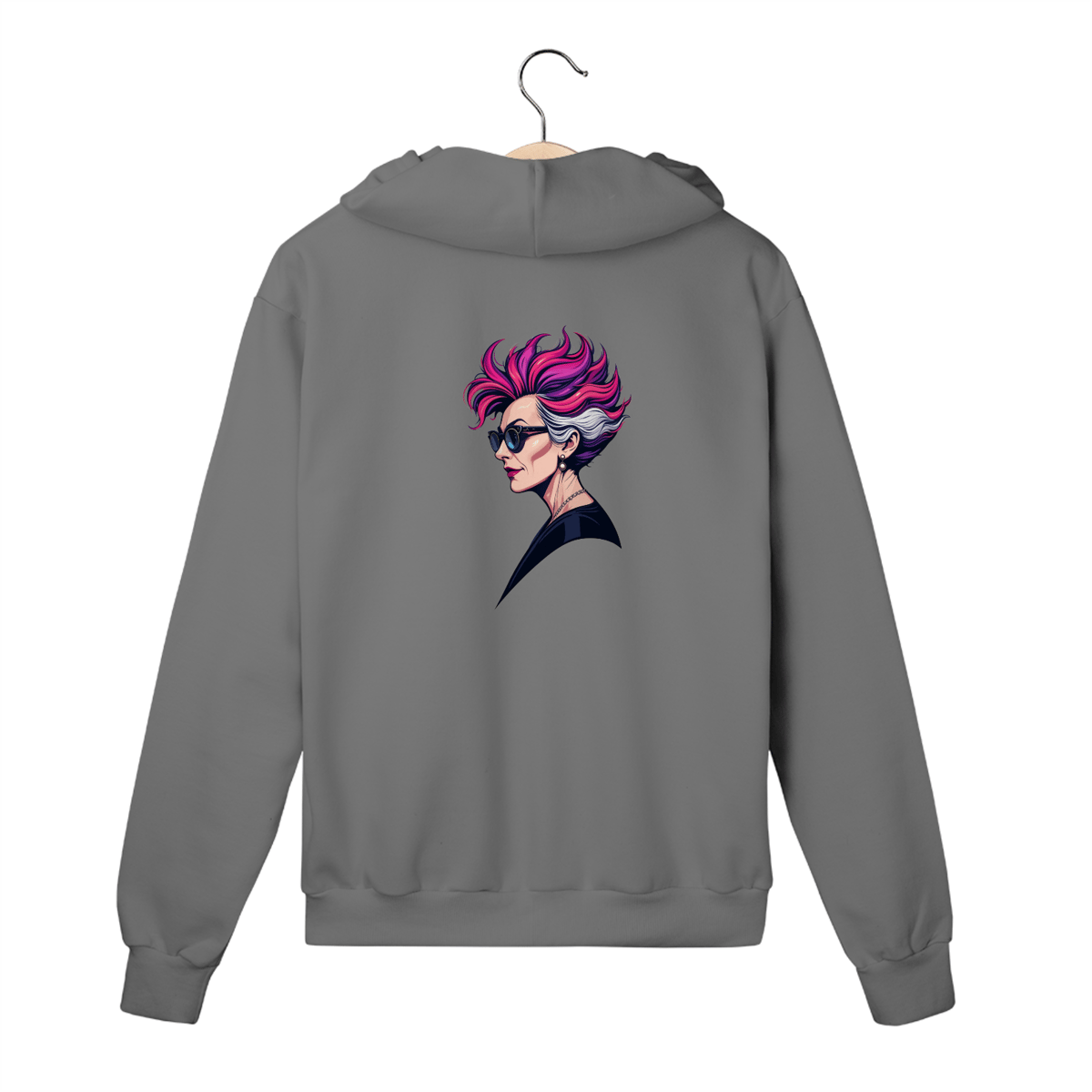 Moletom Premium com Zíper Véia Loca – Porque o Estilo Não Se Fecha Nunca