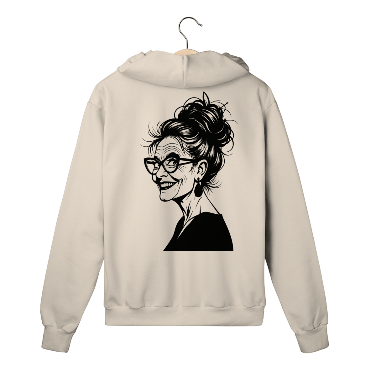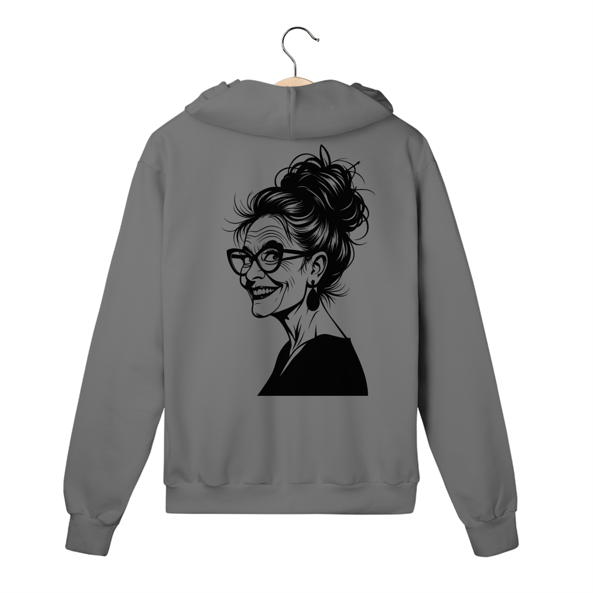 Moletom Premium com Zíper Véia Loca – Porque o Estilo Não Se Fecha Nunca