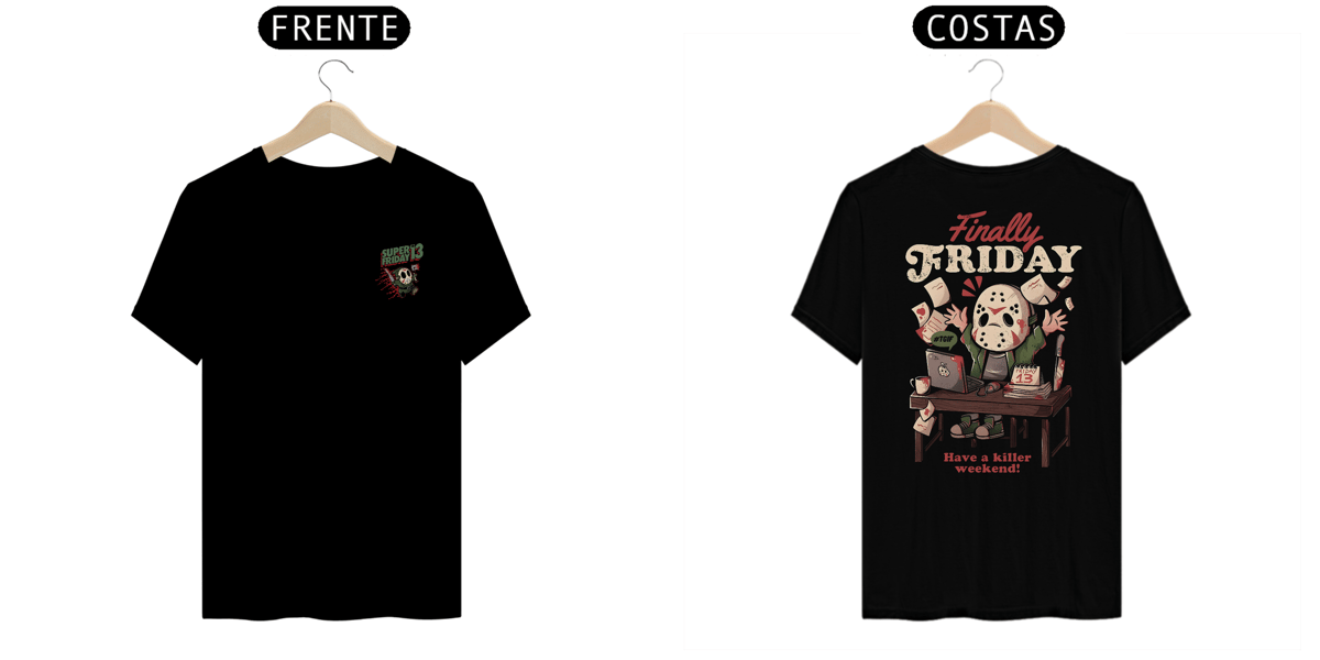 Depois de uma semana sangrenta de boletos, chefe enchendo o saco e café frio, é hora de botar a máscara e celebrar o merecido descanso! A estampa “Finally Friday – Have a Killer Weekend” da Véia Loca Estilo Brabo é o grito de guerra de quem sobreviveu à semana e tá pronto pra causar no fim de semana.