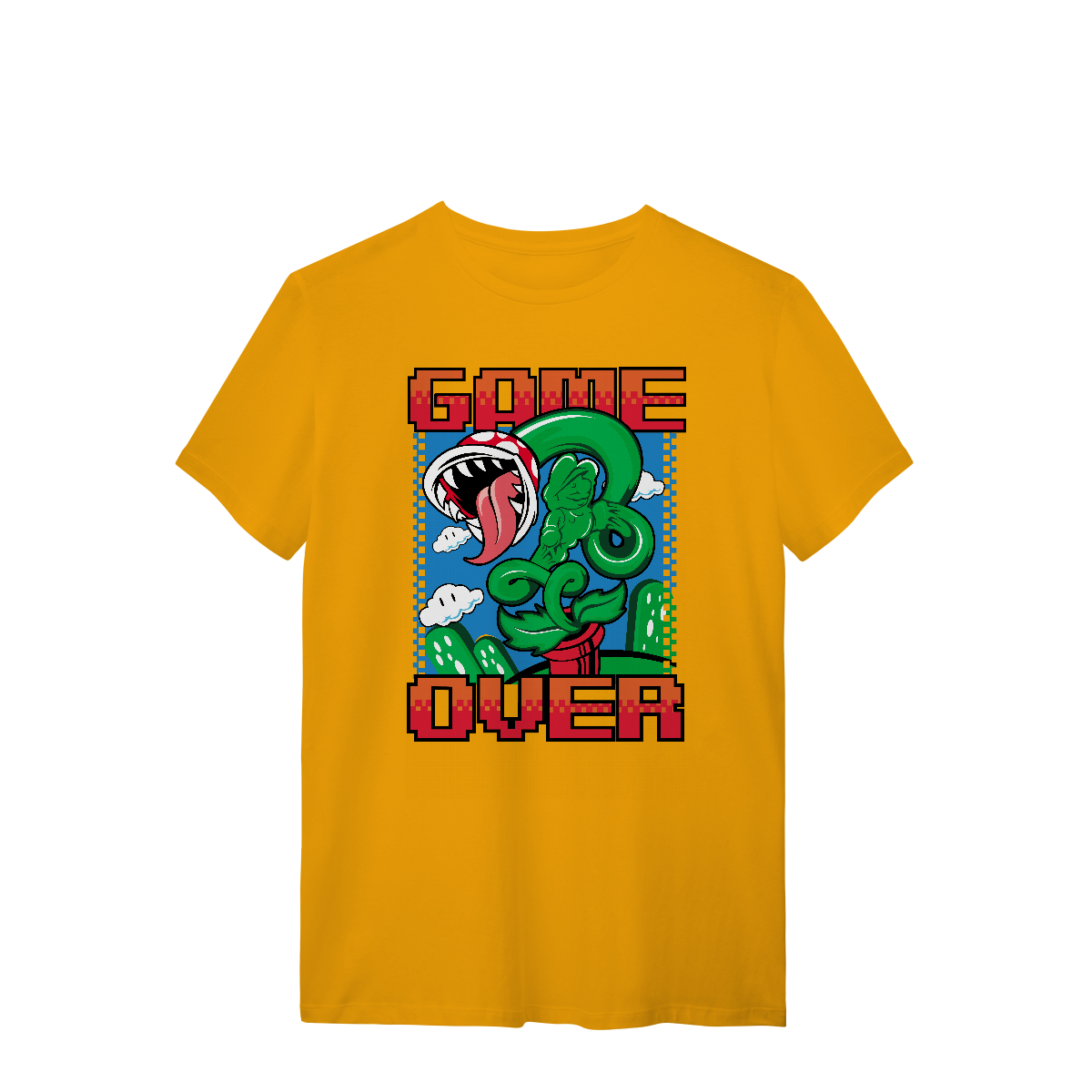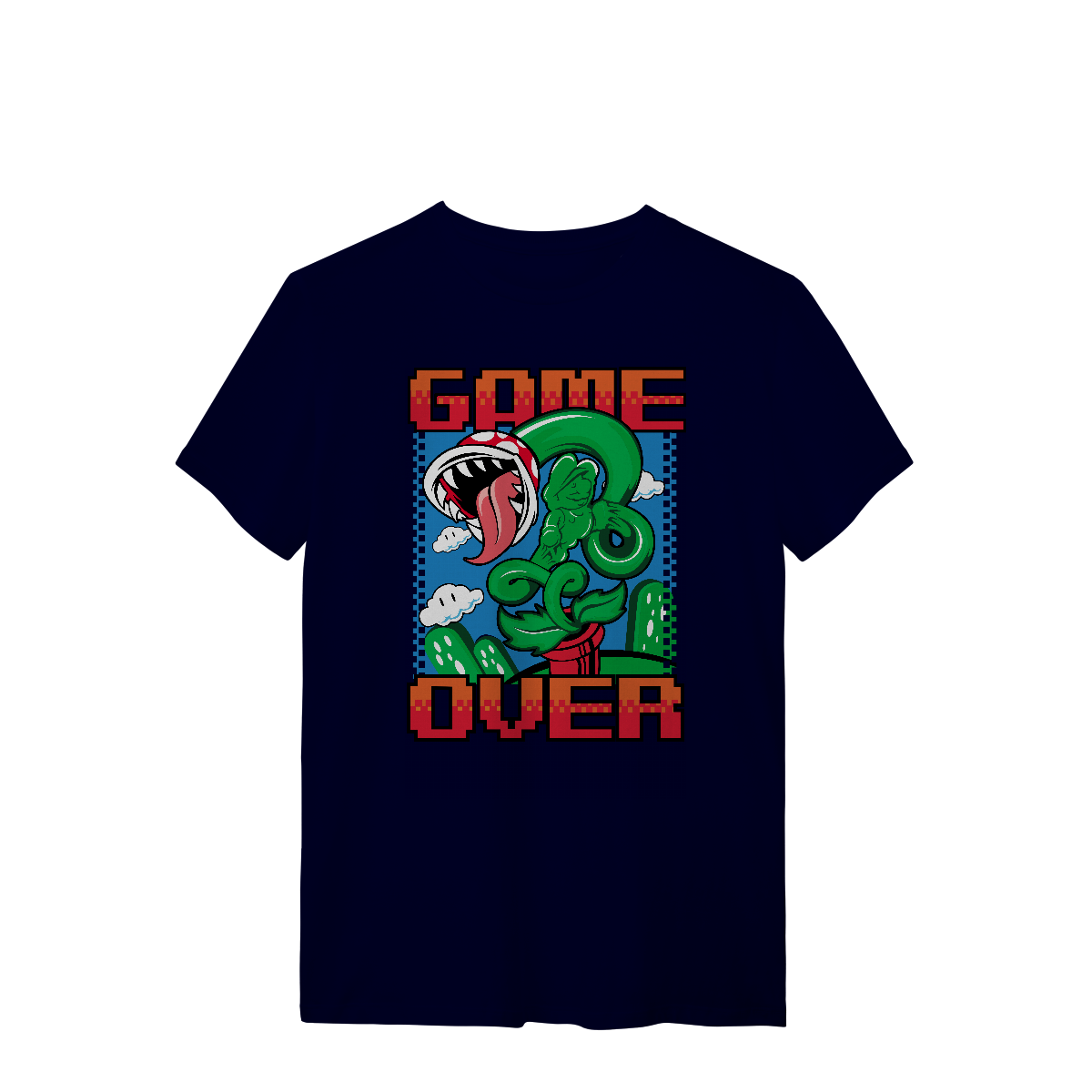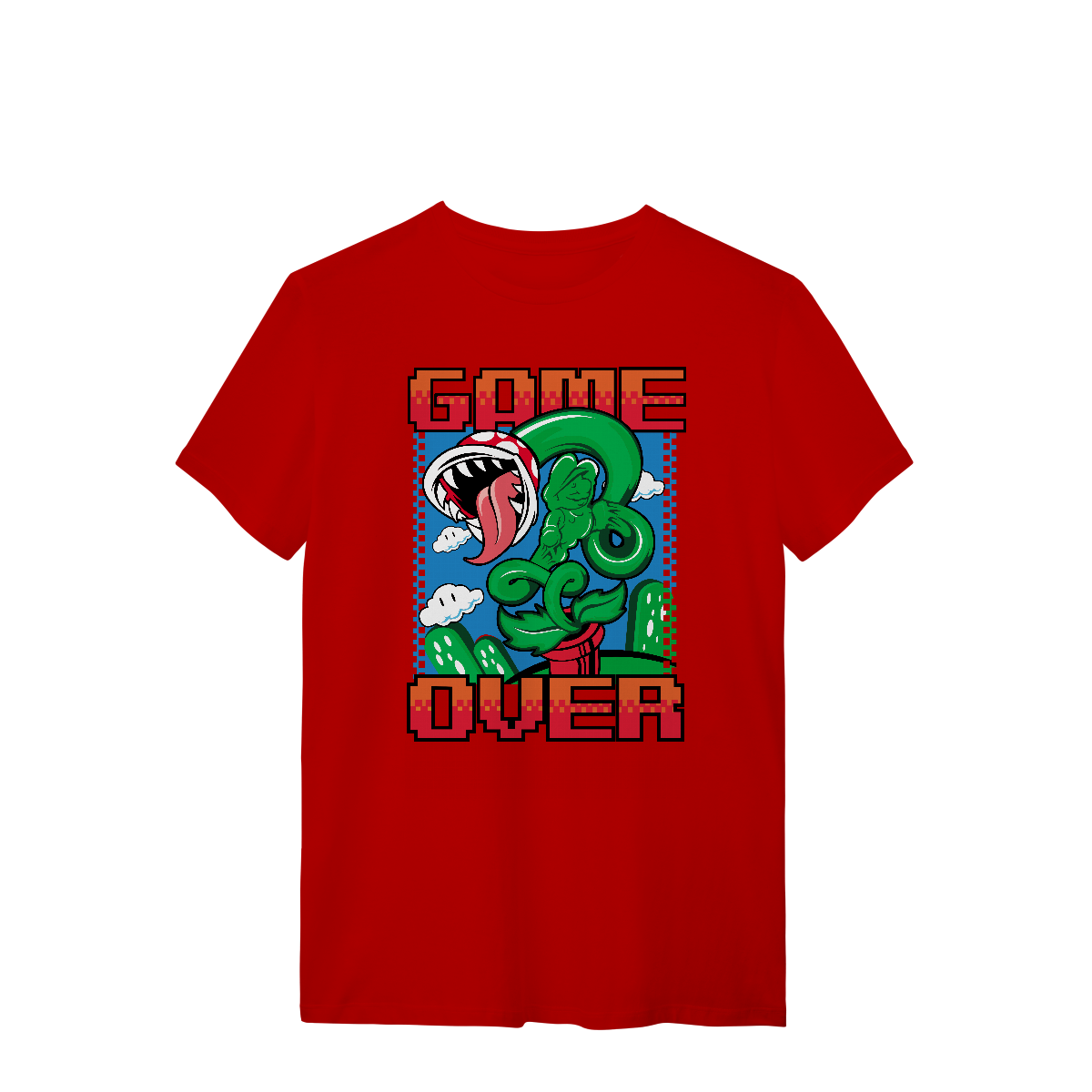 Essa camiseta é pra quem já foi esmagado por tartaruga, caiu no buraco, tomou língua na cara e ainda respira (por pouco), é pra quem morreu 78 vezes na mesma fase e ainda xingou o controle.