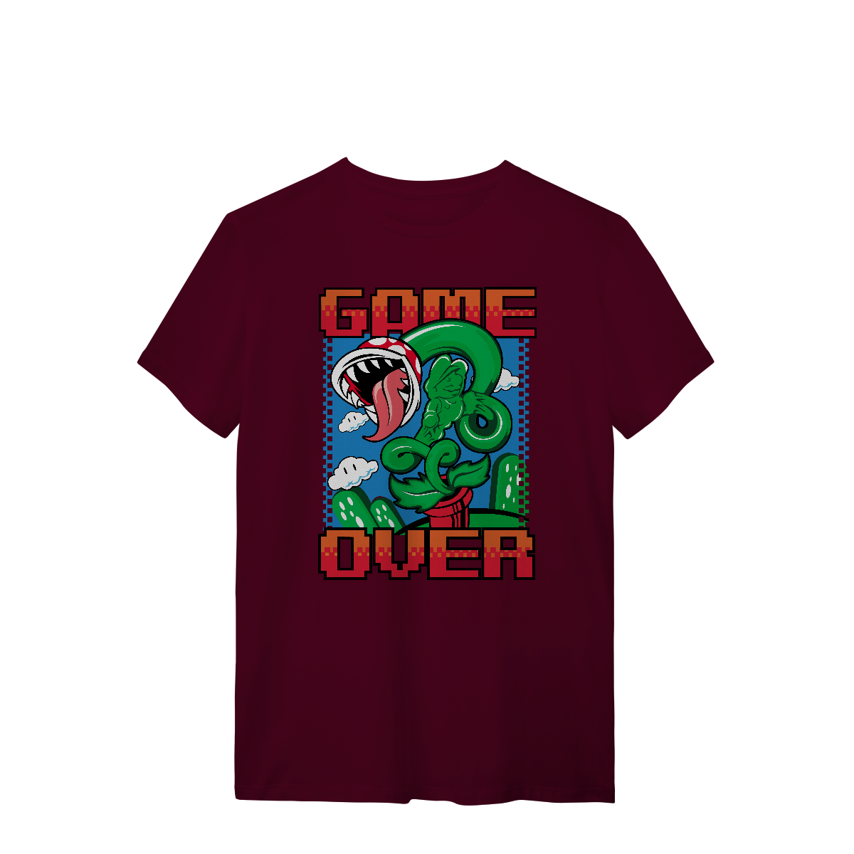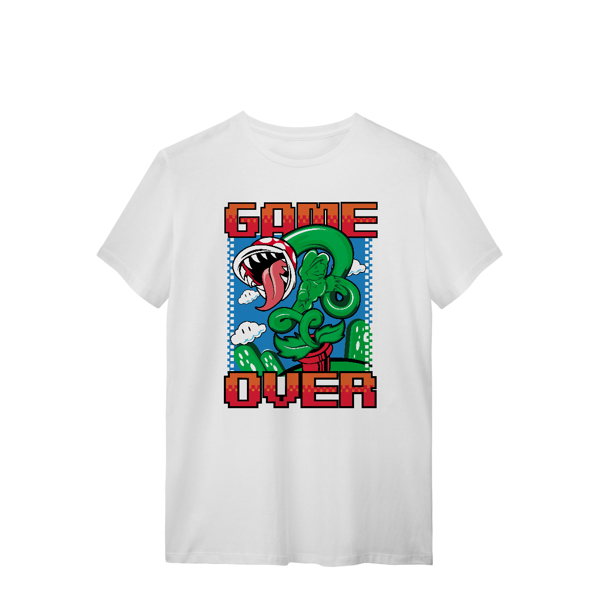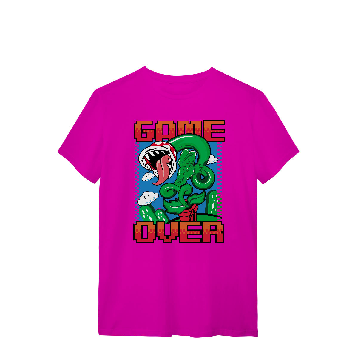 Essa camiseta é pra quem já foi esmagado por tartaruga, caiu no buraco, tomou língua na cara e ainda respira (por pouco), é pra quem morreu 78 vezes na mesma fase e ainda xingou o controle.