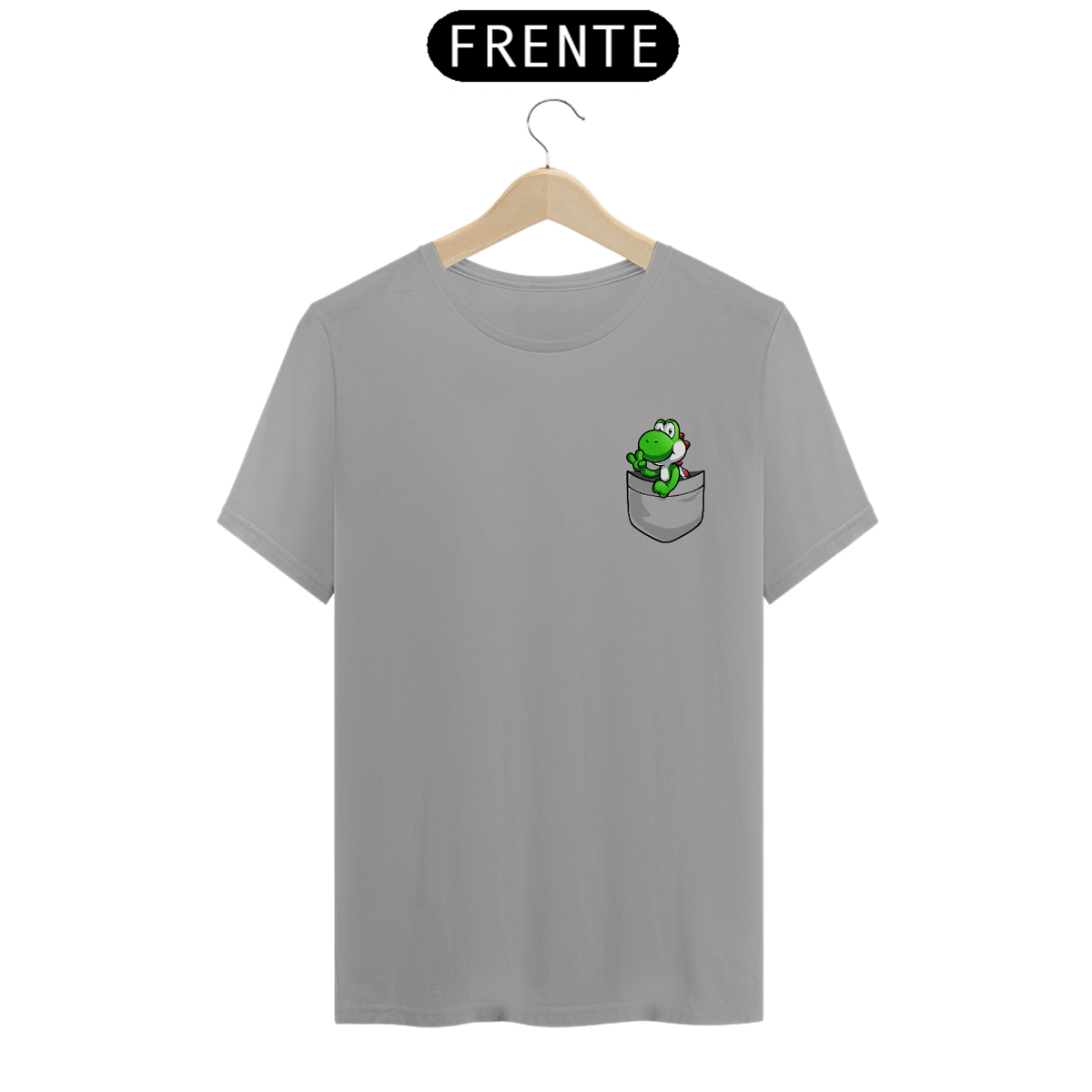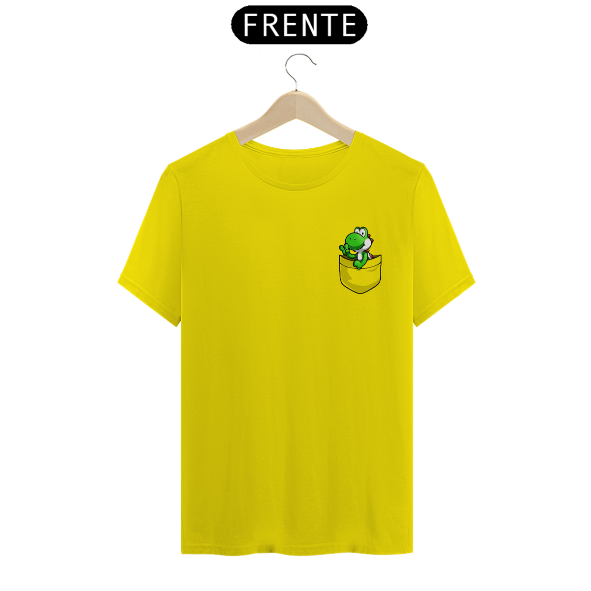 CAMISETA YOSHI NO BOLSO – O MASCOTE MAIS QUERIDO DOS GAMES, DIRETO NO SEU PEITO!
